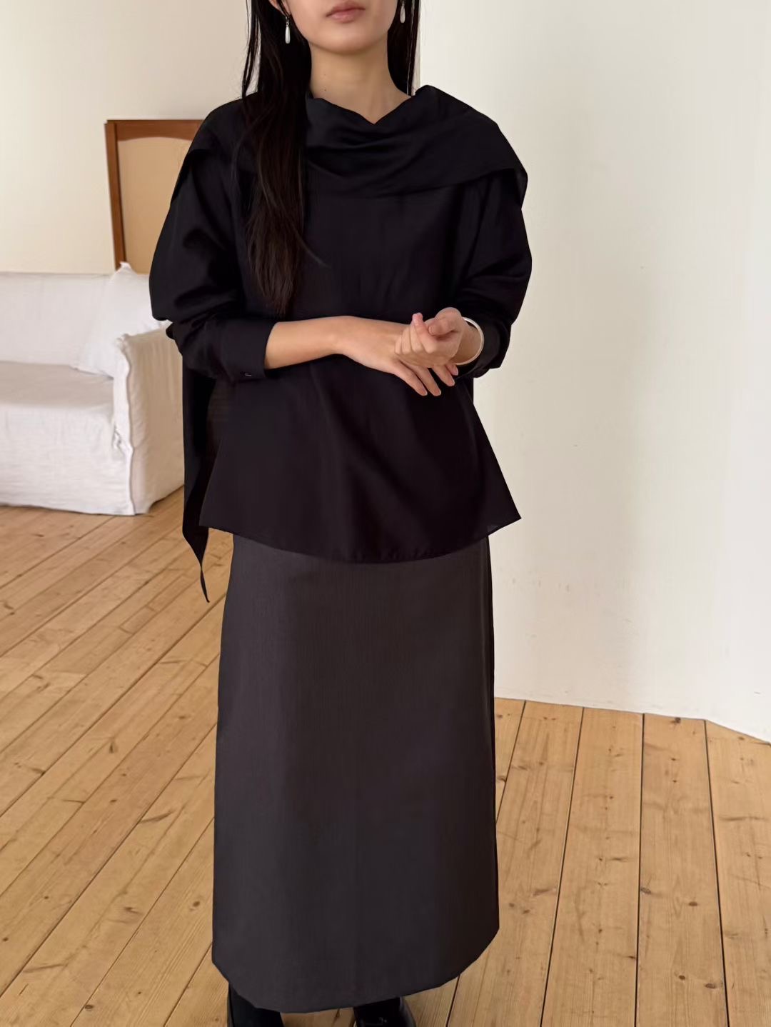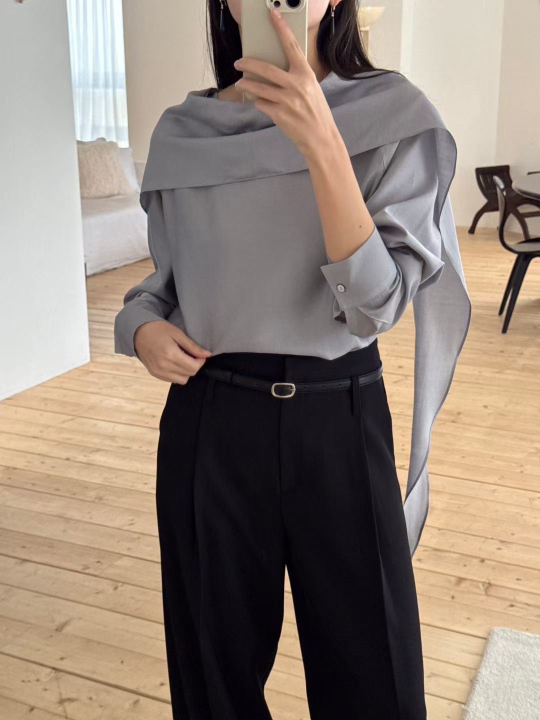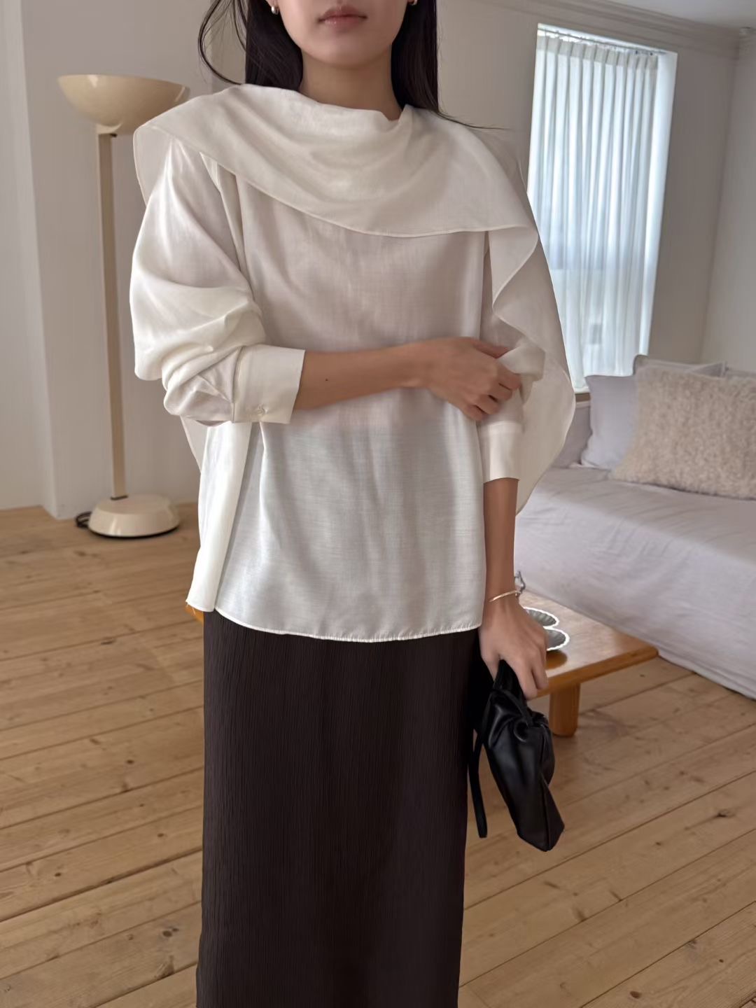 B12 千金氛圍感圍巾領上衣