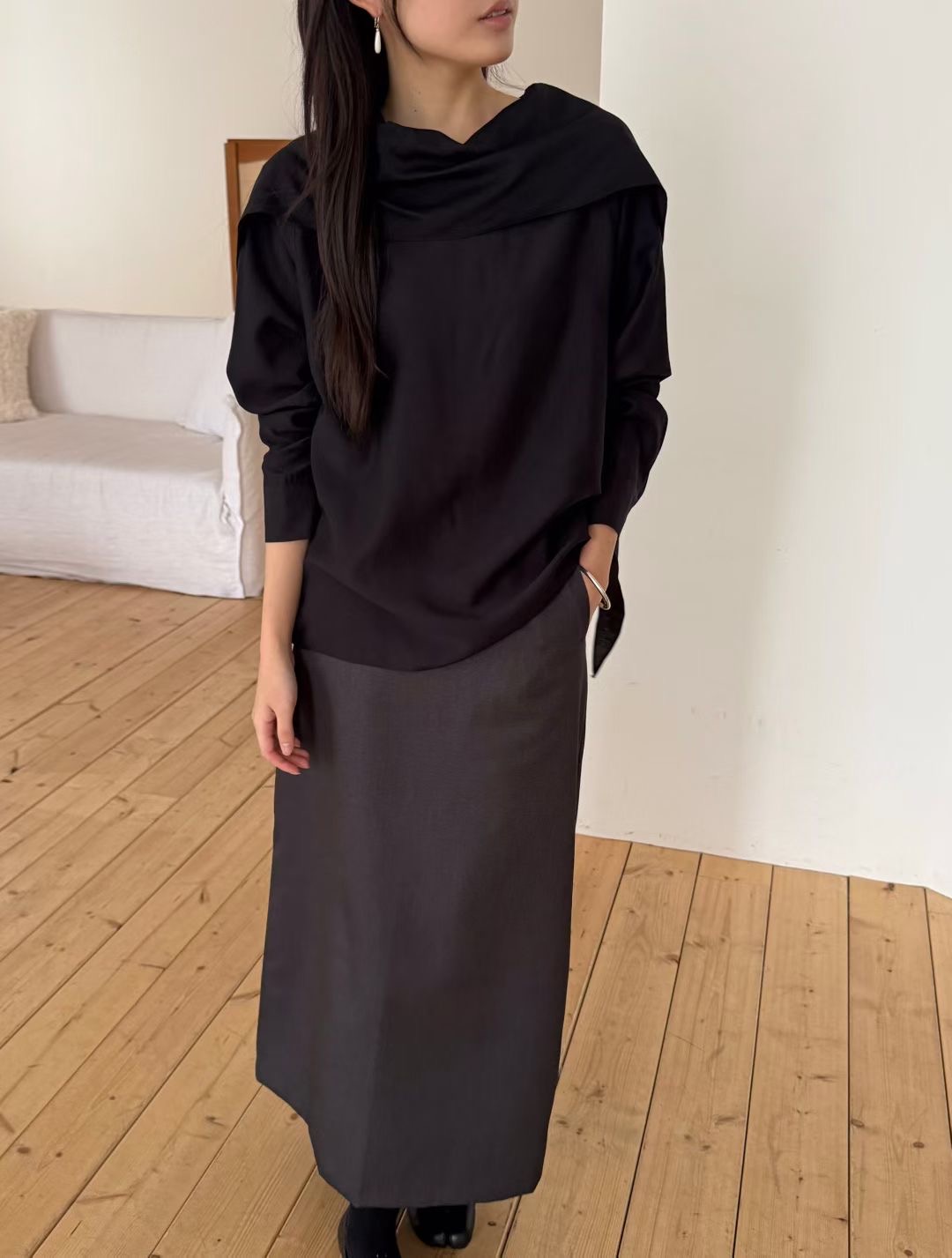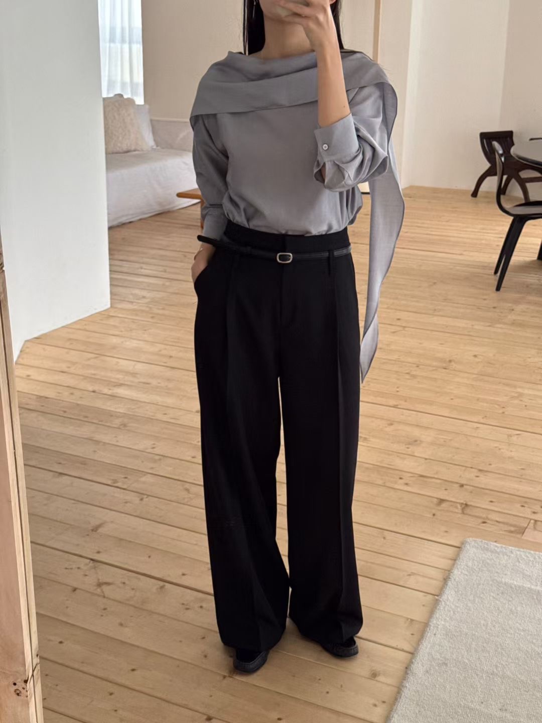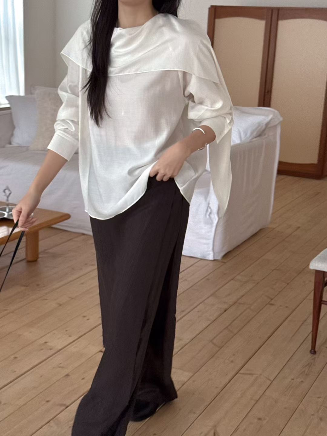 B12 千金氛圍感圍巾領上衣